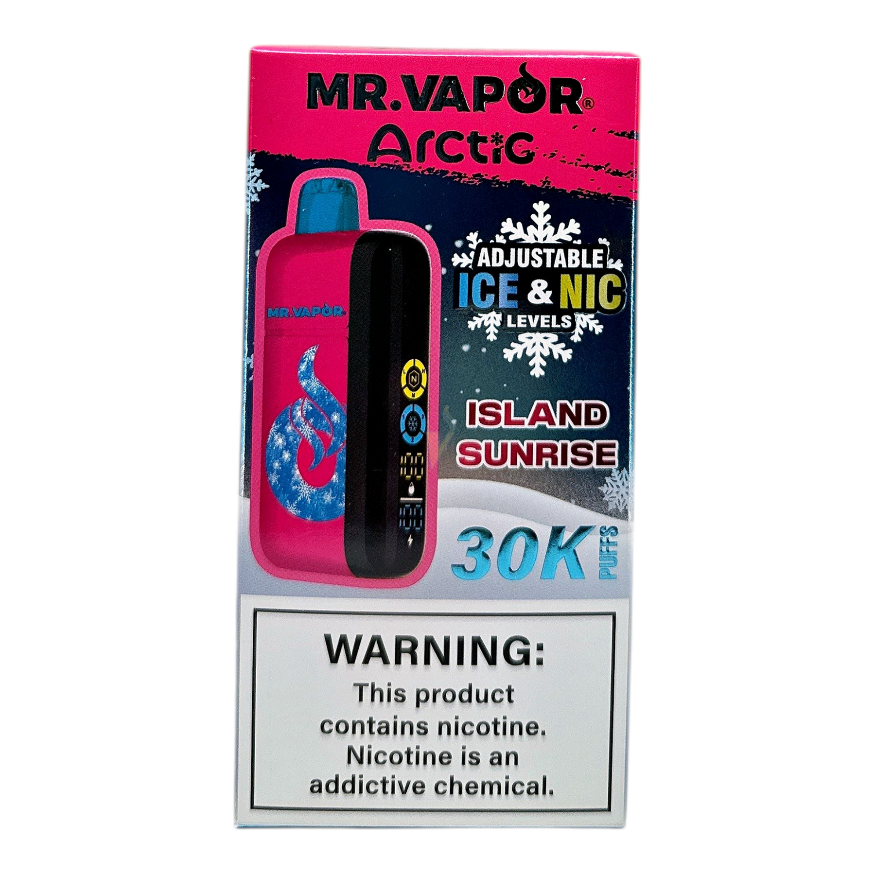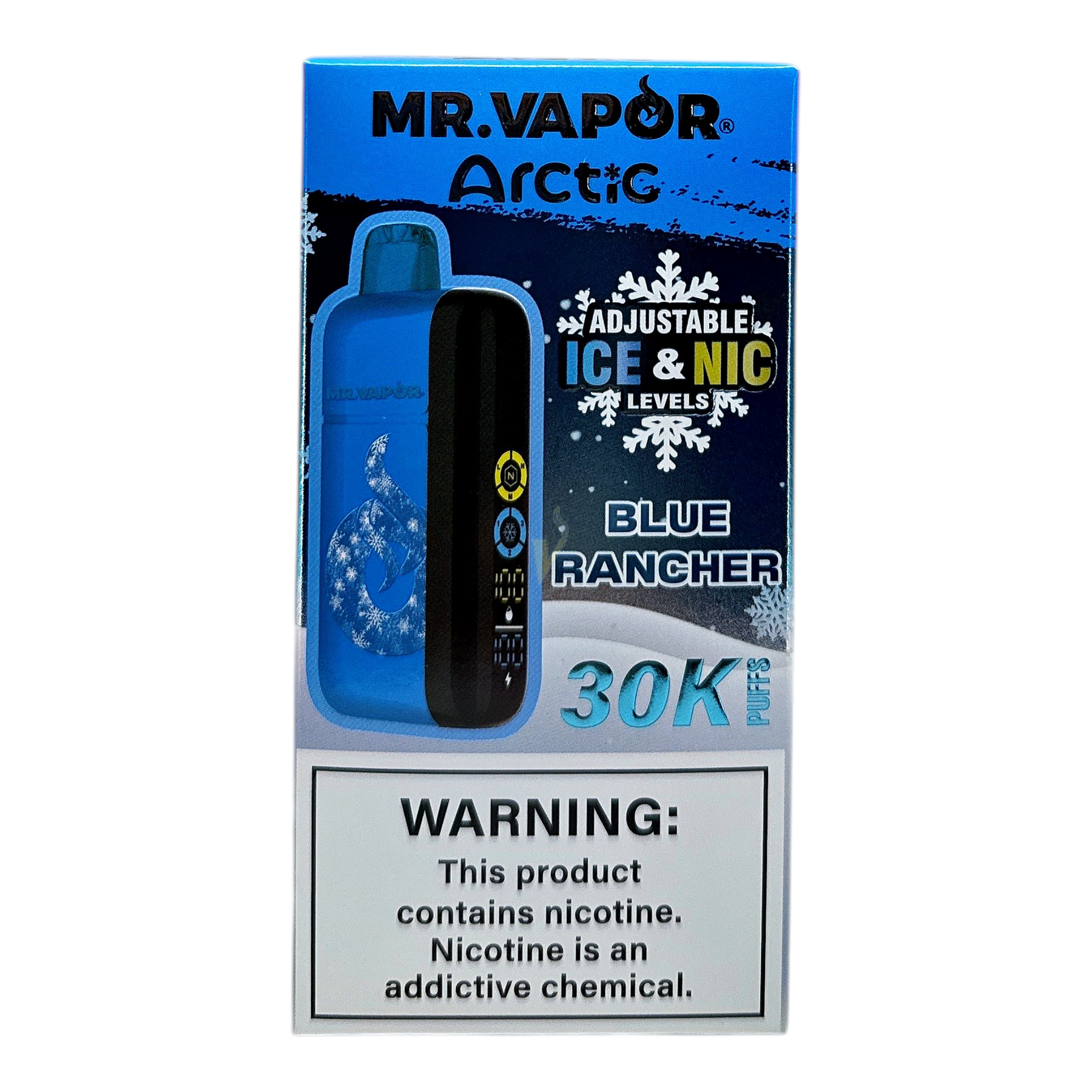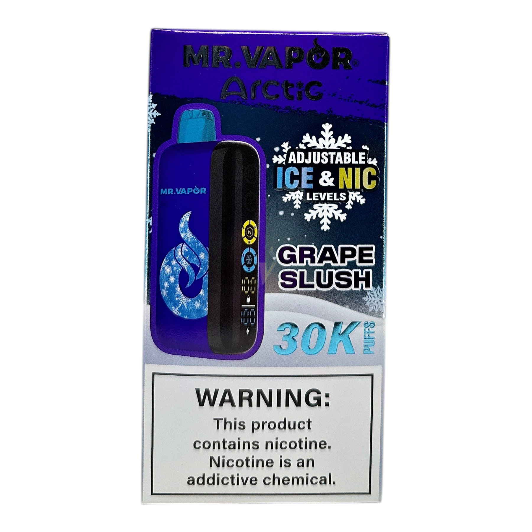- Adjustability: On-device controls for Ice (cooling) intensity and Nicotine level