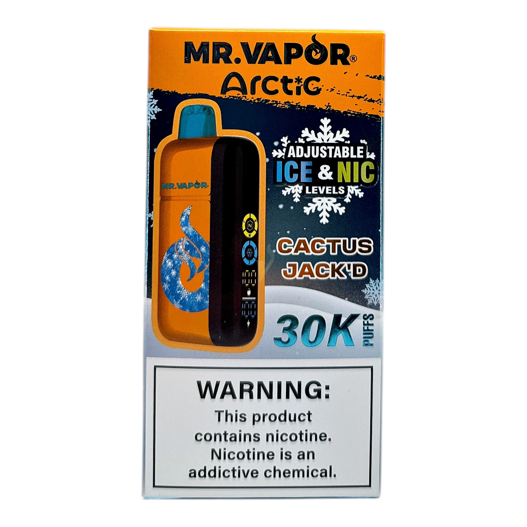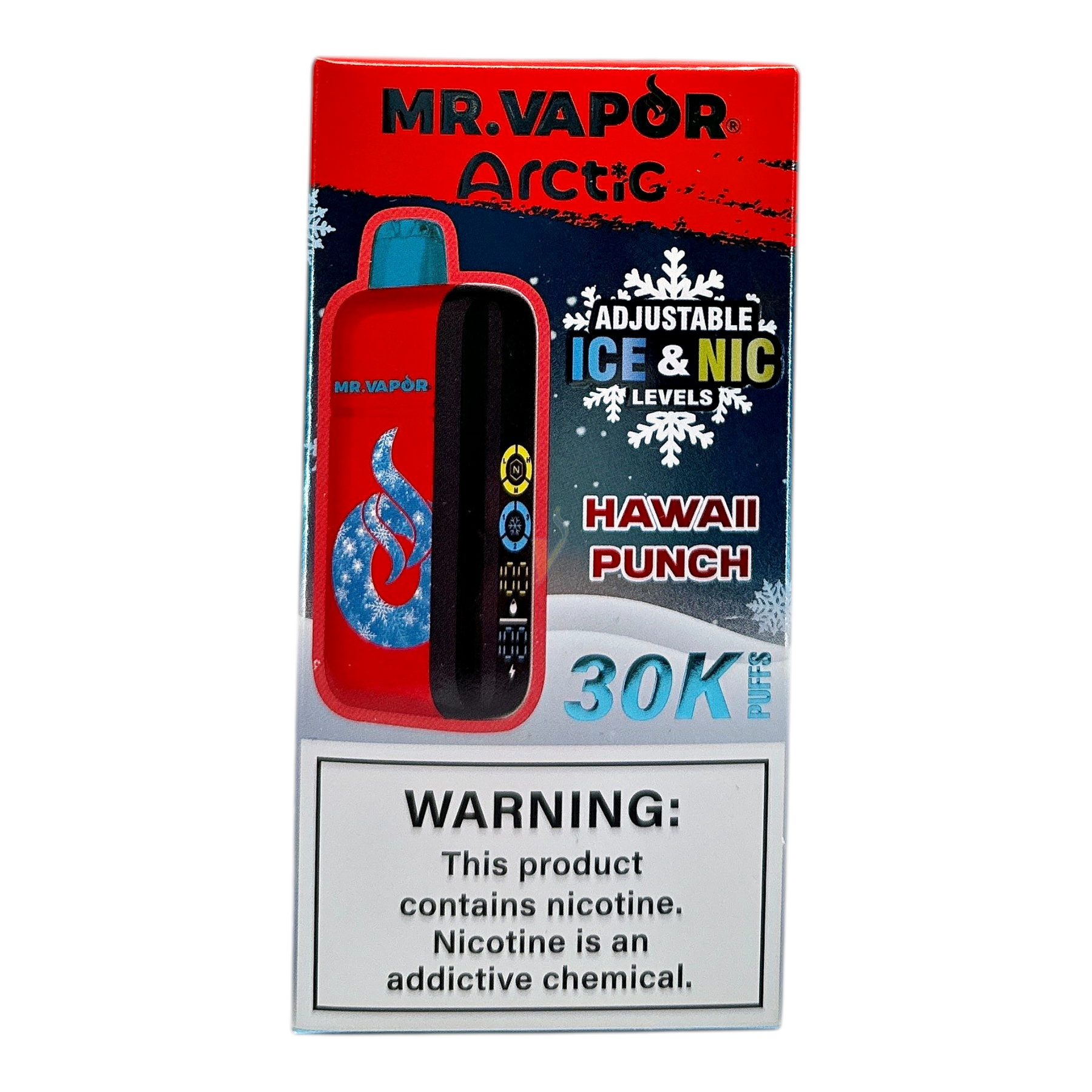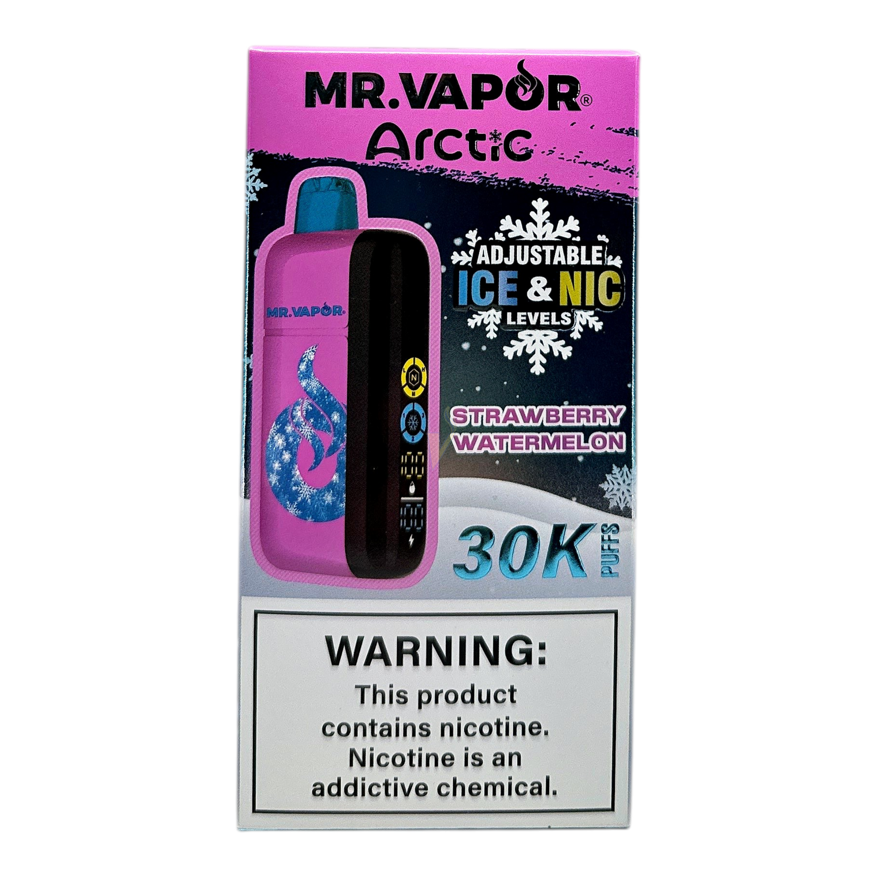 - Adjustability: On-device controls for Ice (cooling) intensity and Nicotine level