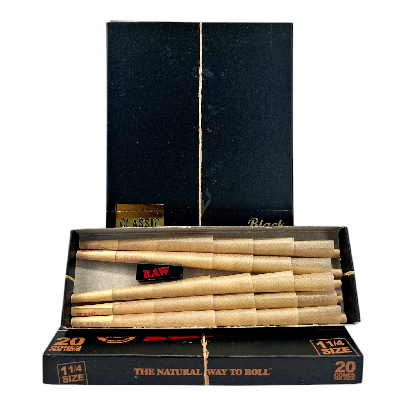 - 20 Raw Black 1 1/4 pre-rolled cones