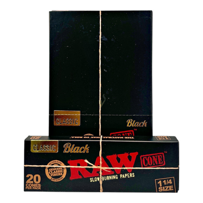 Discover the perfect companion for your smoking sessions with Raw Black 1 1/4 20ct Cones. Crafted with care, these pre-rolled cones offer an unmatched blend of convenience and pure, natural flavor. Whether you're a seasoned connoisseur or just starting out, Raw Black cones are designed to elevate your experience every time.
