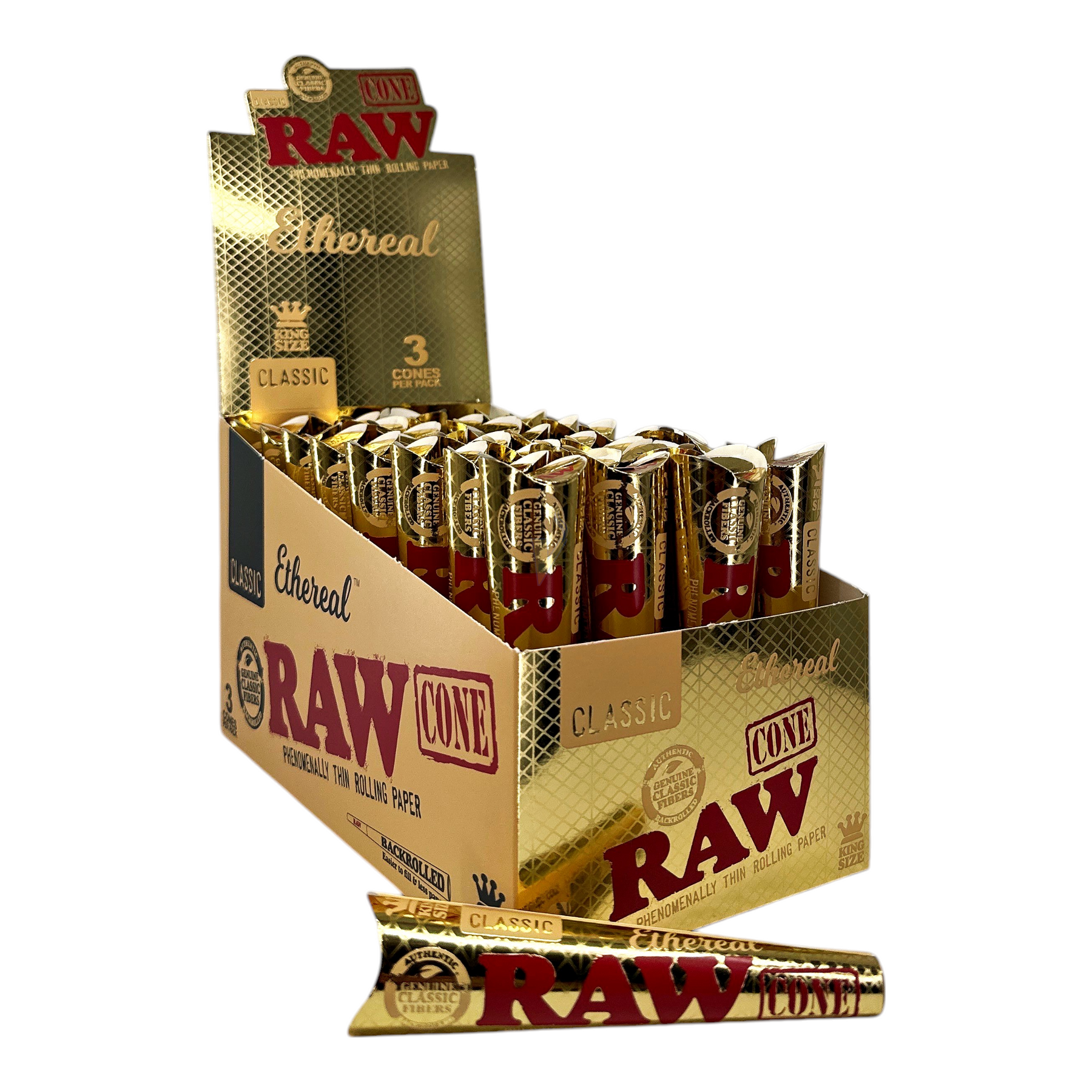 Welcome to a new level of smoking elegance with RAW Ethereal King Size Cones. Crafted for those who appreciate the finer things, our cones offer a seamless blend of convenience and premium quality. Experience the ultimate smoothness and let your favorite herbs shine through every puff.