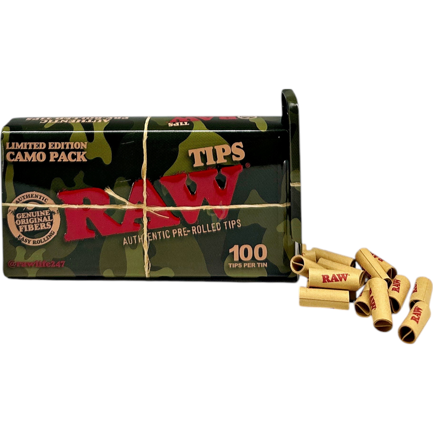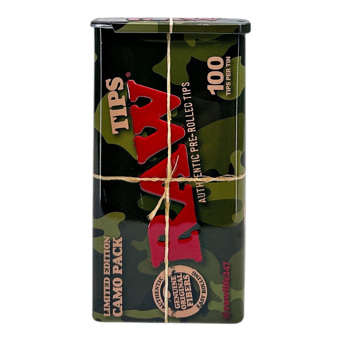 Raw Pre Rolled 100ct Tips Camo Pack Tin
