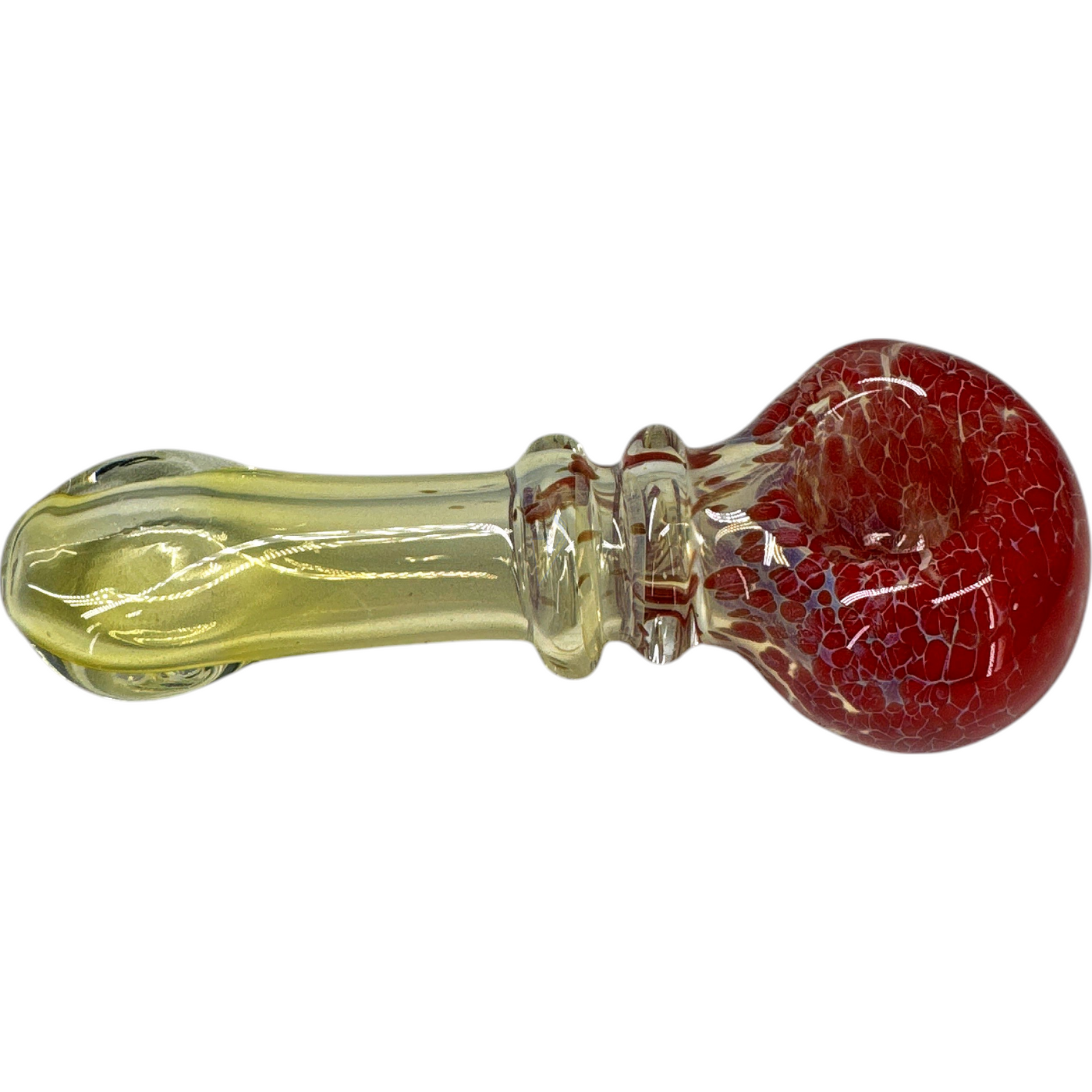 - Design: Fumed glass with speckled head cap featuring rich red and white crackling patterns